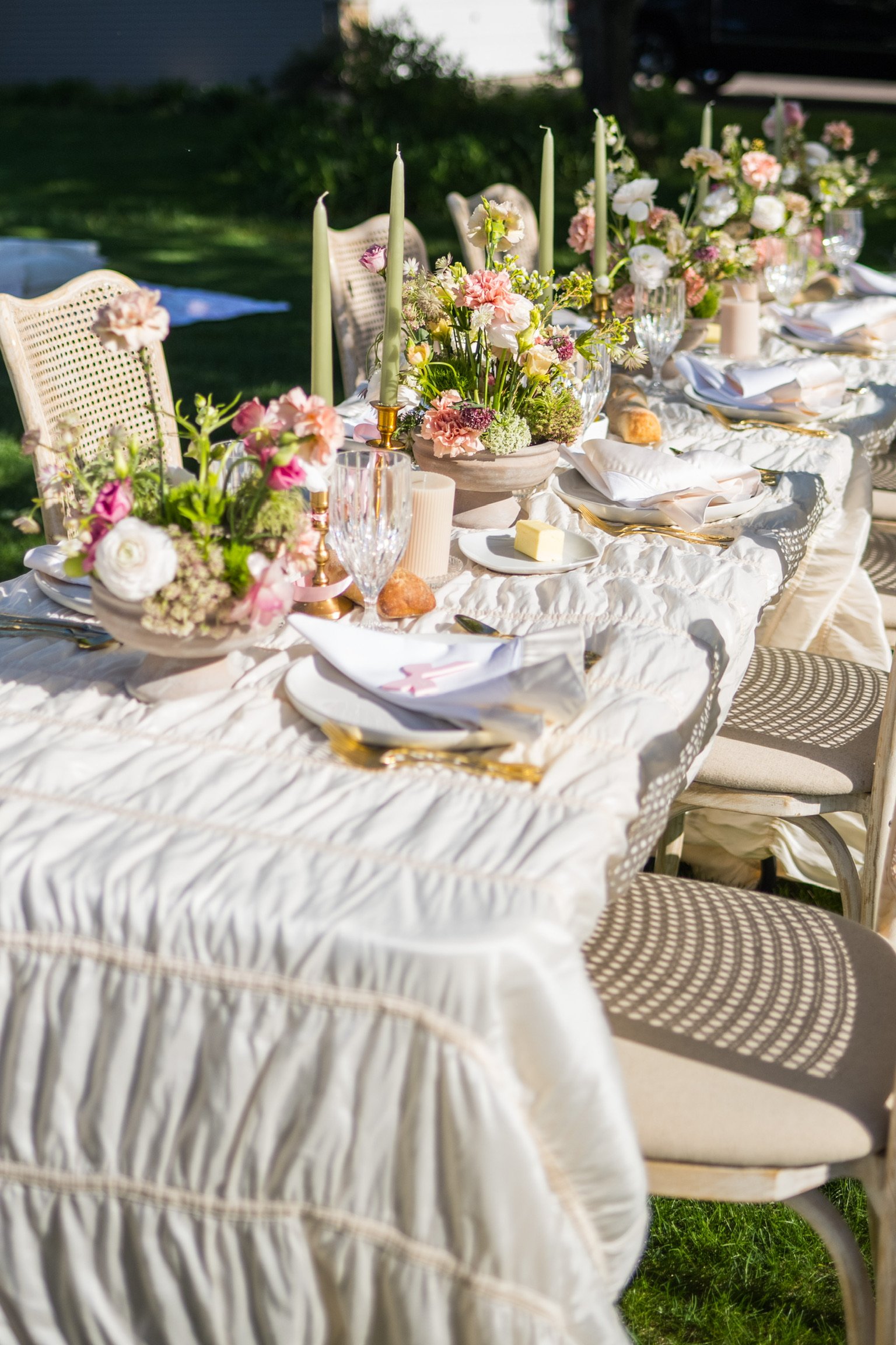 A cohesive look matters: backdrops, florals, rentals, and signage reading as one intentional story.